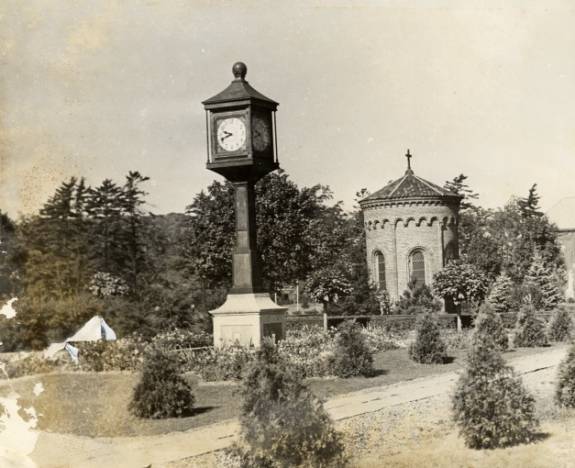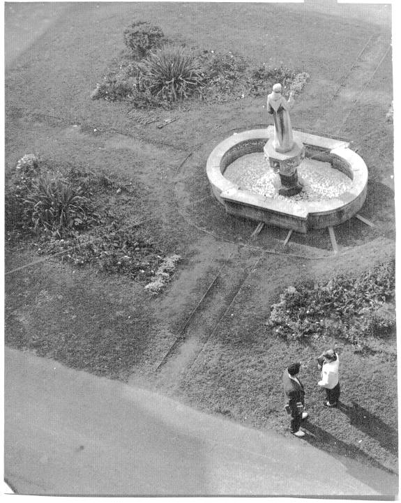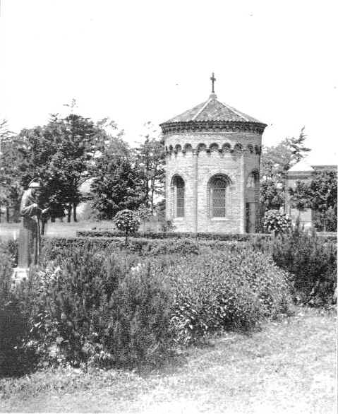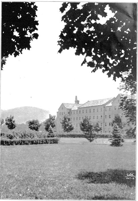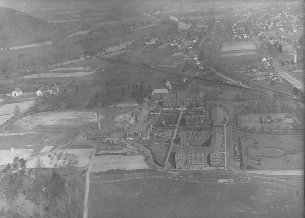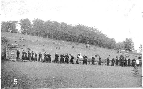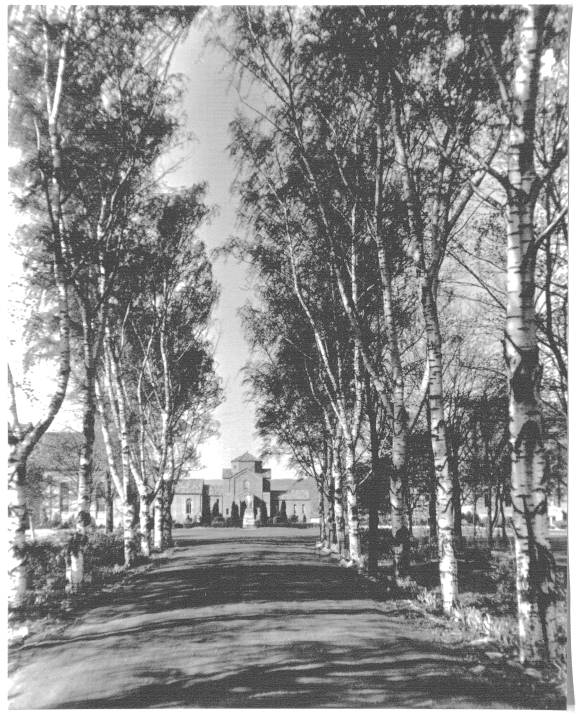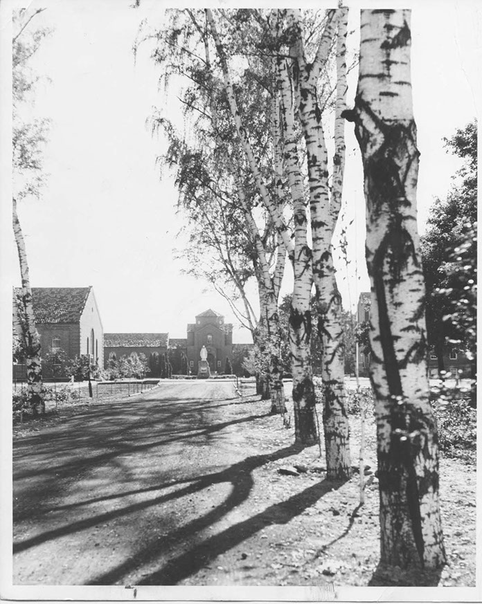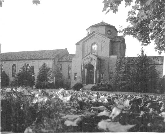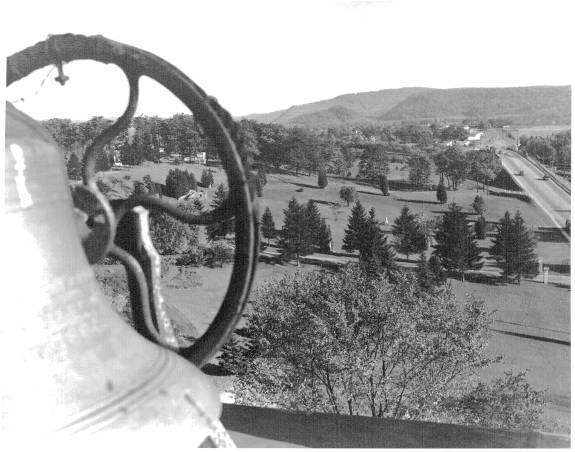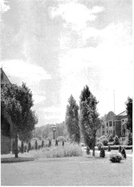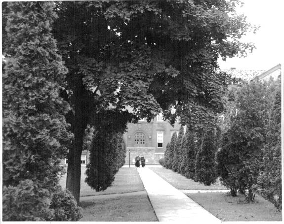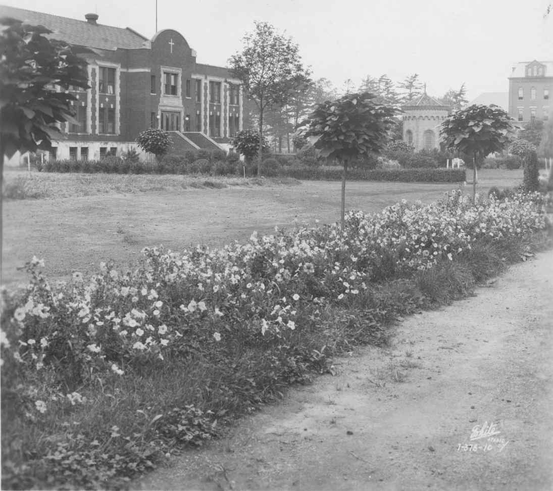 To the south of De la Roche and Alumni Halls lay a pathway that led to a small shrine dedicated to St. Therese of Lisieux. Just beyond this shrine there was a grove of trees and a grotto dedicated to the Blessed Virgin Mary. To the west and south of these sites were the McGraw-Jennings Athletic Fields. Beyond all these to the south lay the line of trees that marked the path of the Allegheny River. There was a railroad bridge nearby spanning the river which allowed people to venture over to the hills and valleys on the other side.