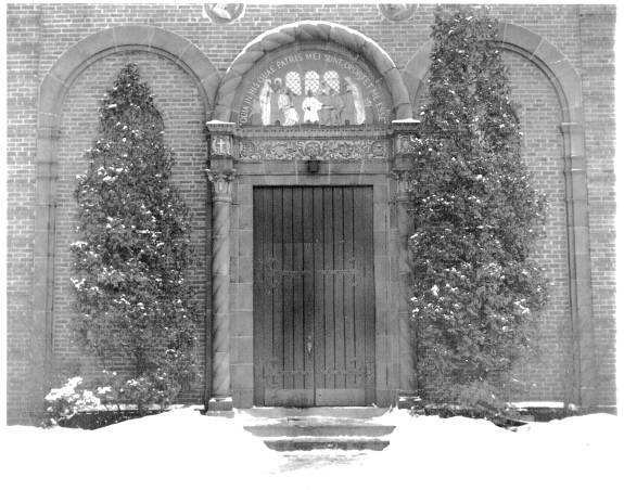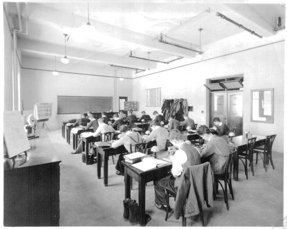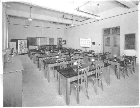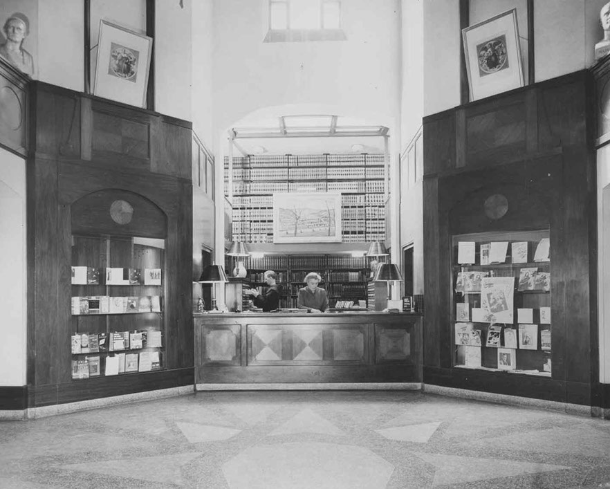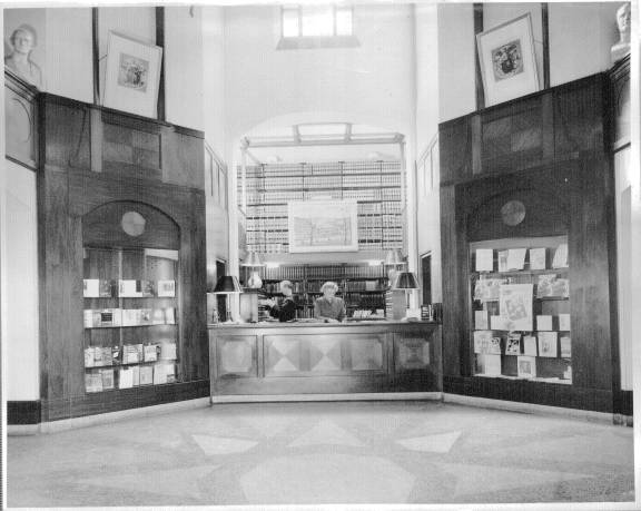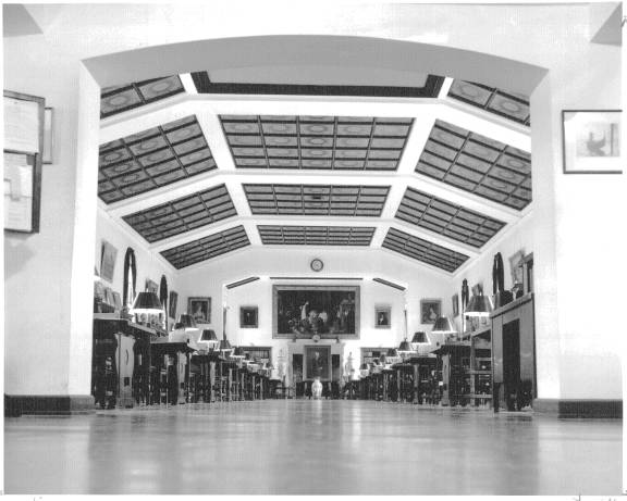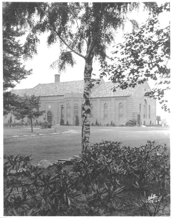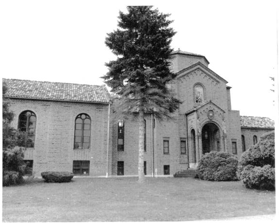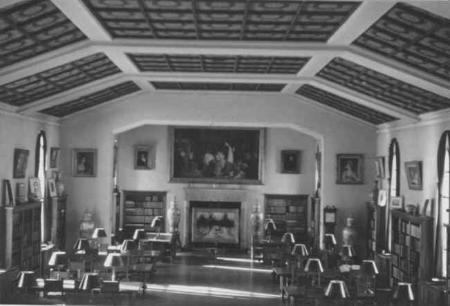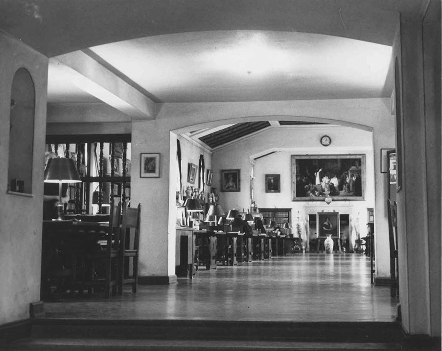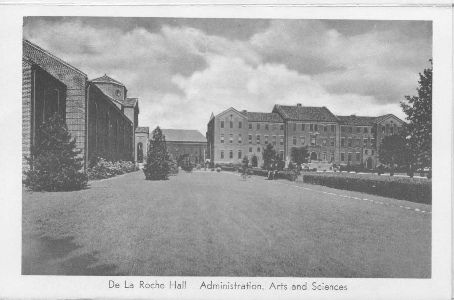 Friedsam Library was the newest building on campus. The president's office overlooked the library's main reading room. The basement of the Library had a number of separate study rooms containing various subject collections. East of the Library was De la Roche Hall which was the classroom building but which also housed the bookstore and post office. At the east end of campus was Alumni Hall which contained recreation rooms and a large auditorium where films were often shown.