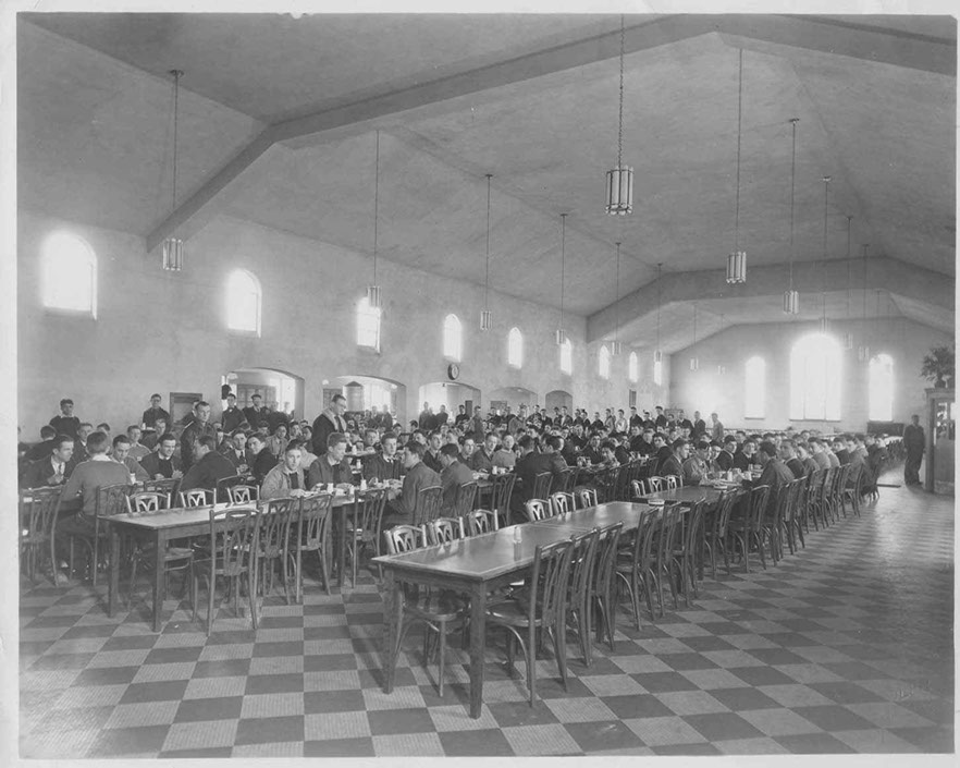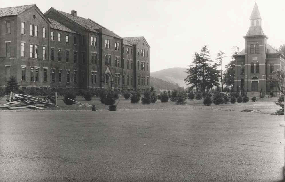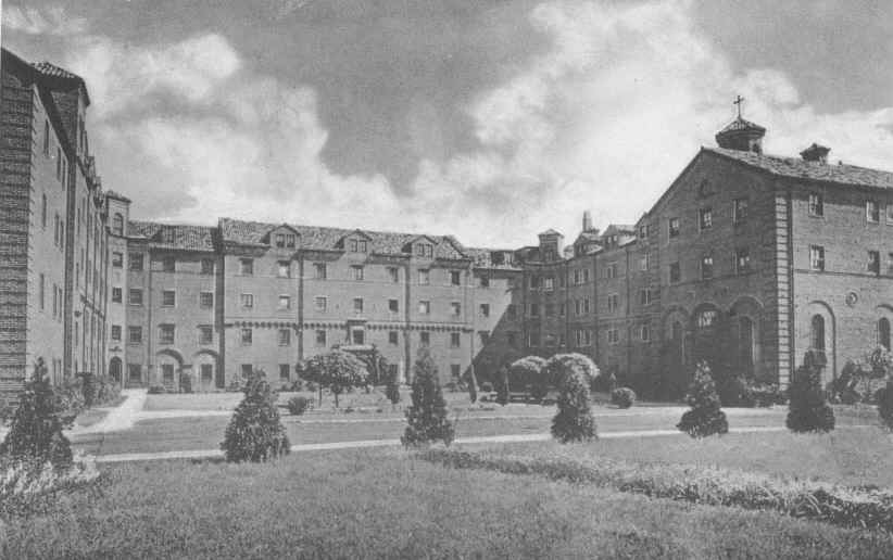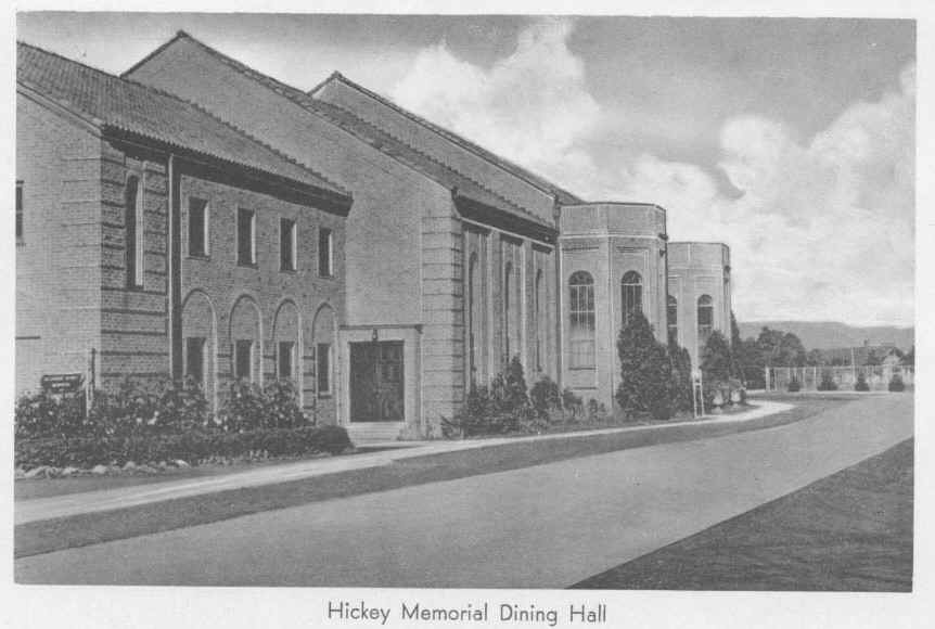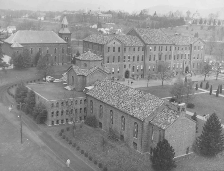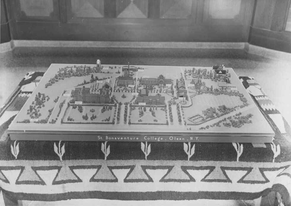 In 1940 the campus of St. Bonaventure (then known as St. Bonaventure College) consisted of six major buildings. To the west was Devereux Hall, which served as both dormitory and Franciscan friary. There was also a chapel attached to the west wing whose entrance faced the inside court. Next to this was Butler Gymnasium that housed not only the gym but also had office areas for athletics and various student groups. On the south side of Hickey Dining Hall there was a convent for the sisters who ran the food service.