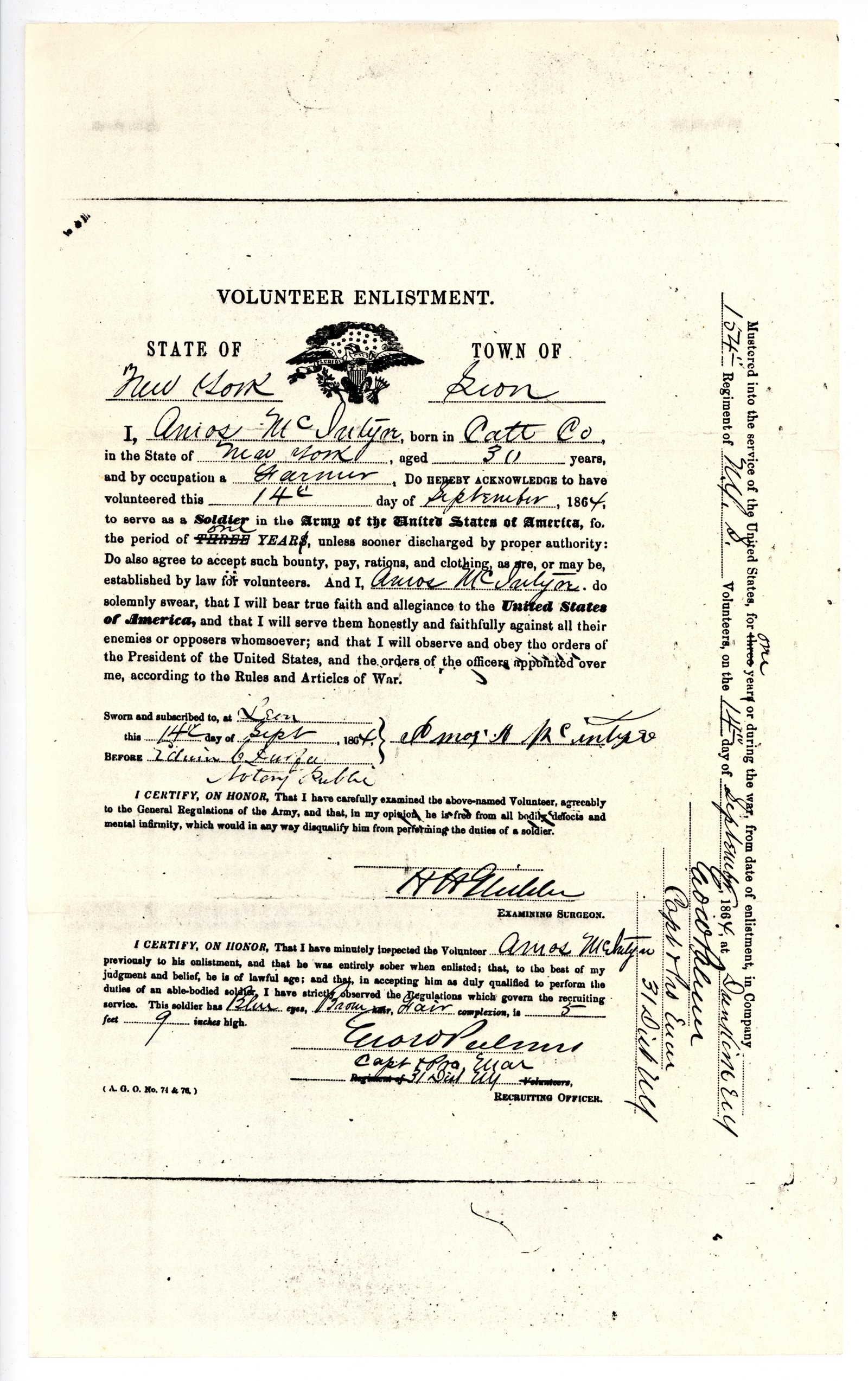 Osterhout's brothers also served in the war: Private Abram Osterhout, Co. I, 34th NYVI & Private James F. Osterhout, Co. C, 107th NYVI. Both survived the war.